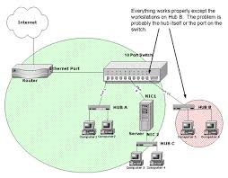 Hub Alat penghubung atar komputer, semua jenis komunikasi hanya dilewatkan oleh hub. hub digunakan untuk sebuah bentuk jaringan yang sederhana (misal hanya untuk menyambungkan beberapa komputer di satu group IP lokal) ketika ada satu paket yang masuk ke satu port di hub, maka akan tersalin ke port lainnya di hub yg sama dan semua komputer yg tersambung di hub yang sama dapat membaca paket tersebut. Saat ini hub sudah banyak ditinggalkan dan diganti dengan switch. Alasan penggantian ini biasanya adalah karena hub mempunyai kecepatan transfer data yang lebih lambat daripada switch. Hub dan switch mempunyai kecepatan transfer data sampai dengan 100 Mbps bahkan switch sudah dikembangkan sampai kecepatan 1 Gbps.